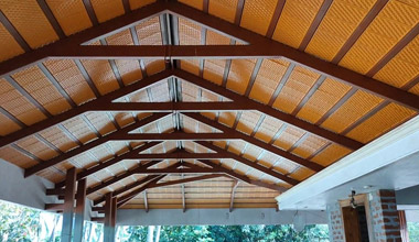 We, Terrahome Concepts & Constructions, construct terracotta hollow block roofs, wood\MS truss Mangalore-tiled roofs, filler slab roofs, jack's arch roofs, hurdi block roofs, terracotta decorative tiles on RCC slope roofs and weather proof tiling on roofs. Terracotta roofing assimilates traditional architecture with modern architecture. The advantages of terracotta roofing are making room cool, light in weight, weatherproof, elegant, rustic, reasonable and durable.